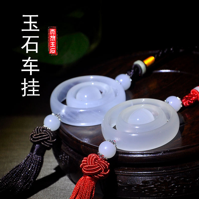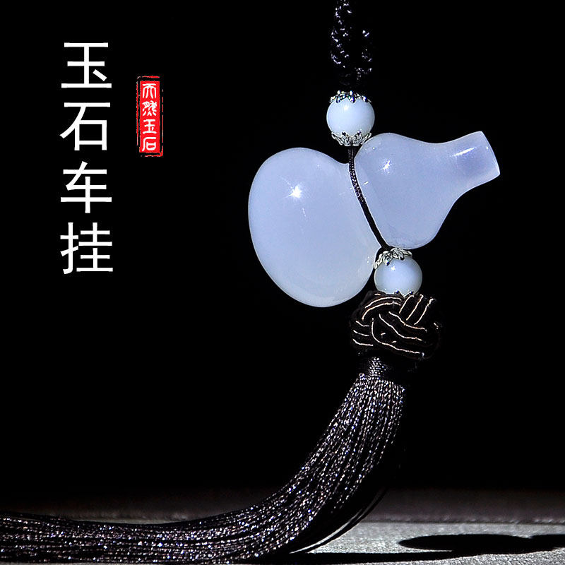 Upscale car pendant white jade Jade Gourd In-car Hanging Ornament Rear Camera Mirror Round Handmade Small Pendant