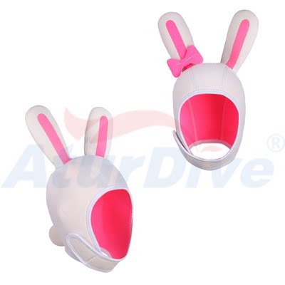 AturDive3mm super elastic rabbit cartoon diving hood diving cap pink white female warm sunscreen snorkeling
