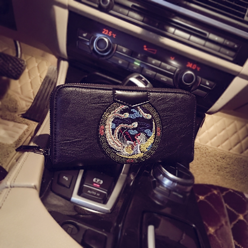 Wallet Guochao Fashion Street Wallet Korean Leather Wallet Mid-Long Wallet Personalized Rivet Wallet Mobile Phone Bag