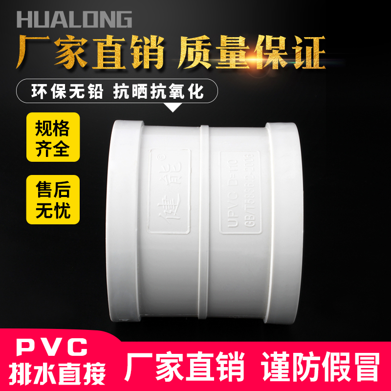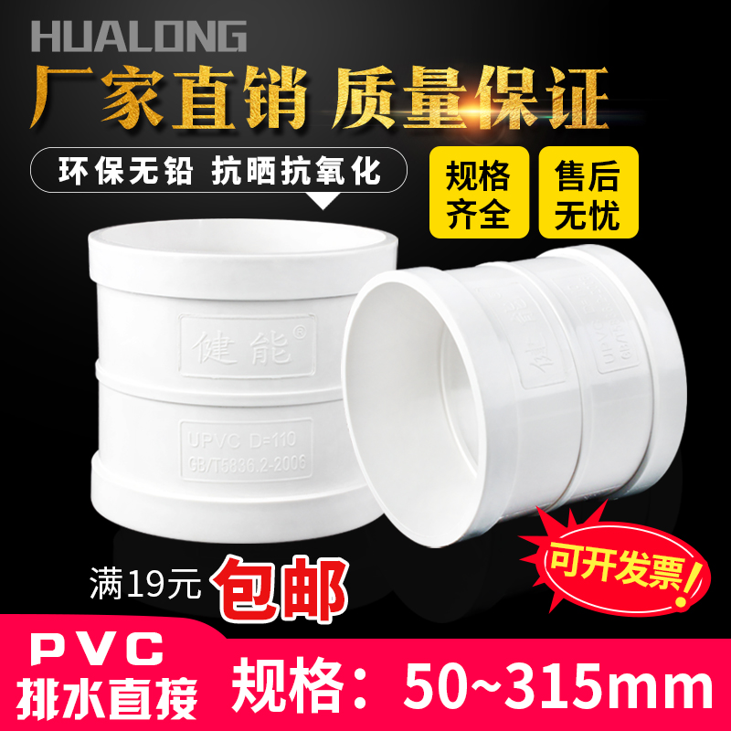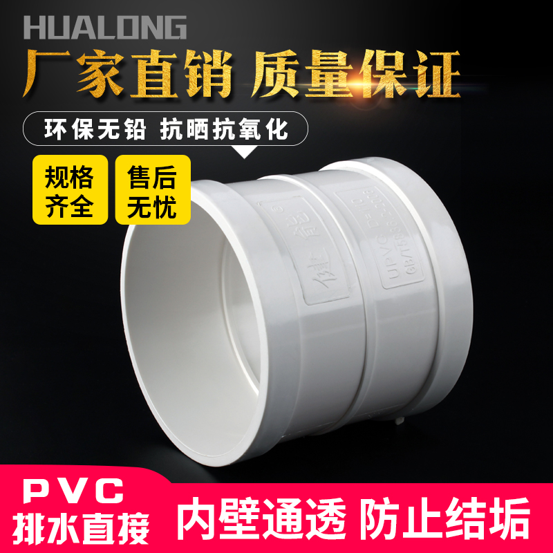 PVC-U direct pipe hoop drain pipe straight joint lower fittings 50 75 110 160 200 250 315