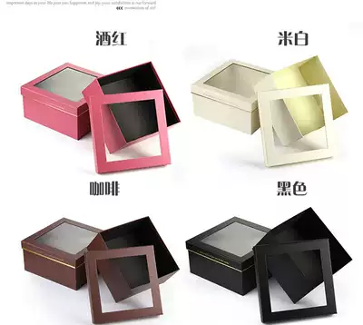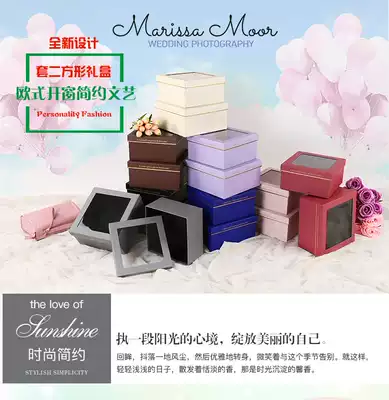 Square transparent gift box open window dumb gold thread sleeve two square flower box transparent box