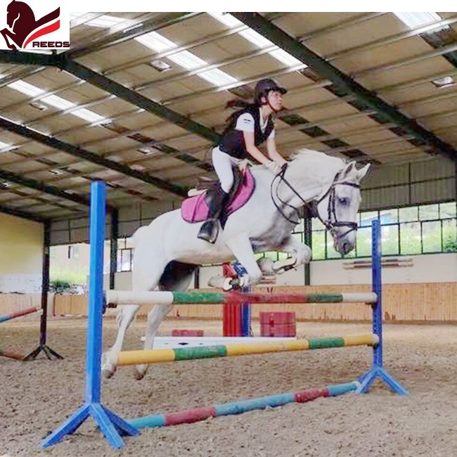 Equestrian obstacle race training with barrier side barrier double column