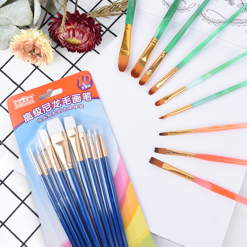 Art students Beginner Watercolor special nylon brush Flat head gouache Oil painting Acrylic brush brush brush brush brush