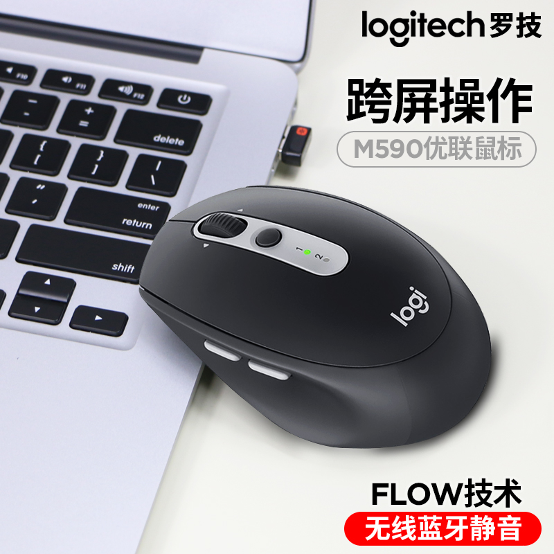 (Official Flagship) Roskills M590 mute Wireless Bluetooth Mouse USB Dual-mode Mac Laptop Desktop Computer Home Office Cute boys and girls replaceable battery cell phone flat M585