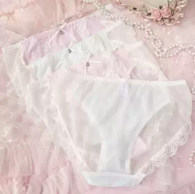 Large size underwear women fat mm200 kg summer transparent cute Japanese sexy lace quick-drying travel mid-waist triangle