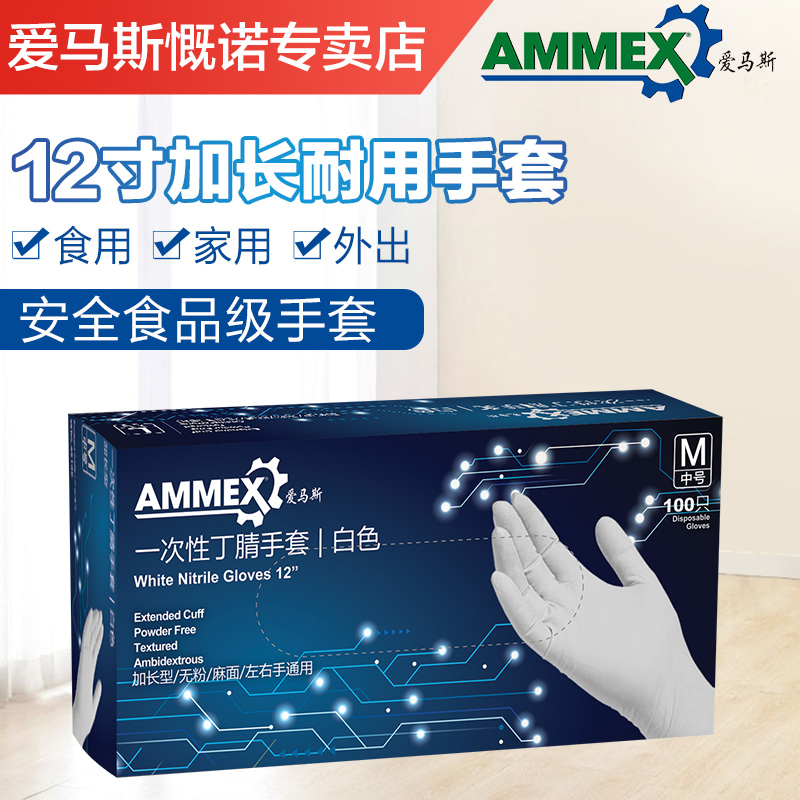 Blue 12-inch thickened extended 100 white 12-inch thickened extended 100 blue nitrile 9-inch 100 black nitrile 9-inch 100 blue synthetic protective gloves