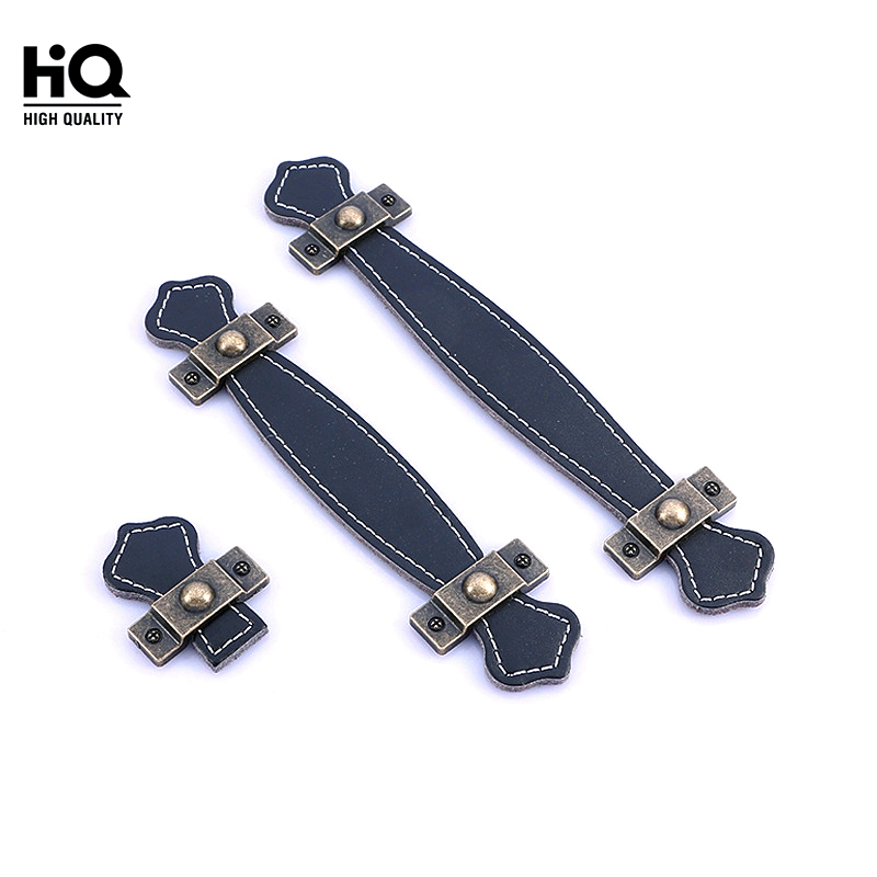 Furniture drawer leather handle zinc alloy imitation ancient retro leather handle double hole PU leather cabinet door leather pier gift box handle