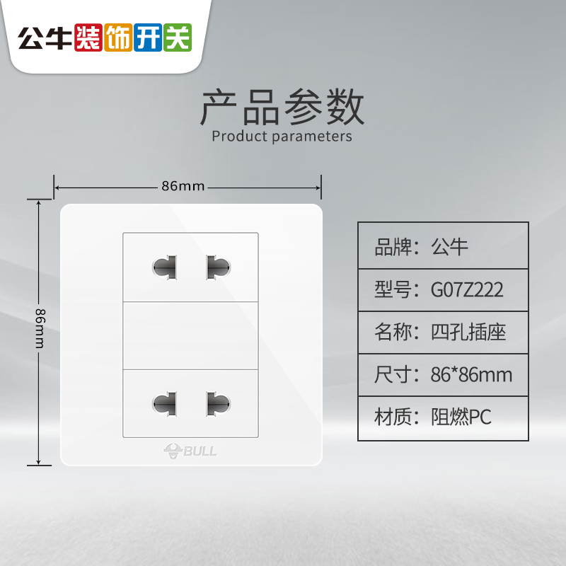 Bull four-hole socket two-two plug two-position two 4-hole double-hole double-pole two-eye plug 86 type switch panel concealed