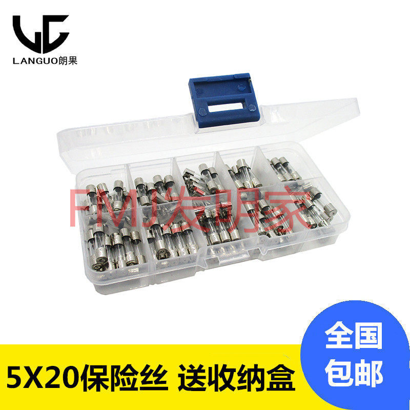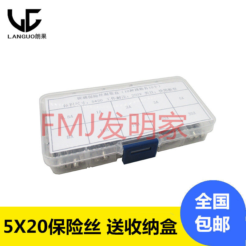 Glass fuse tube 5×20mm 0 5A~30A 250V 100 fast fuse type mixed package element box