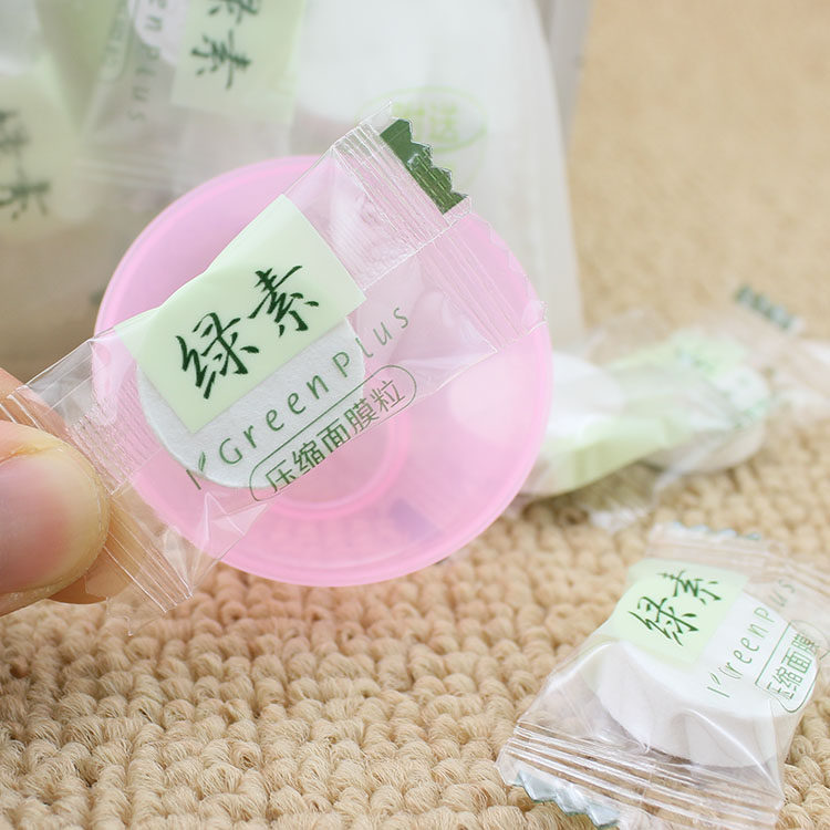 Green Vegetarian Sprinous Cloth Compression Mask Sticker Film 40 granules disposable moisturizing A67