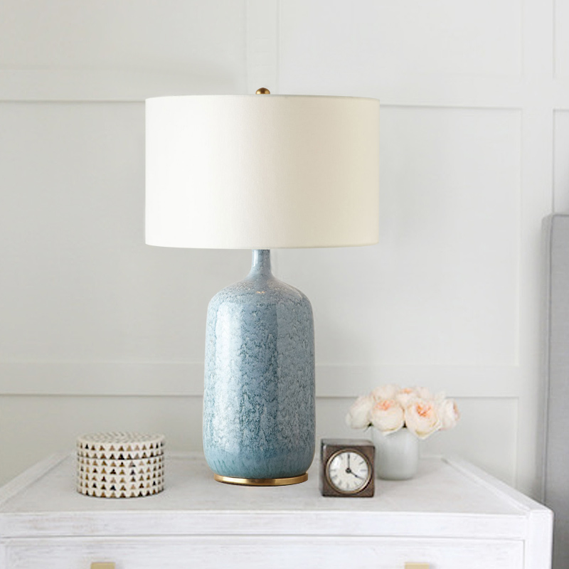 American ceramic table lamp bedroom bedside lamp living room creative warm light simple country personality blue water pattern table lamp s