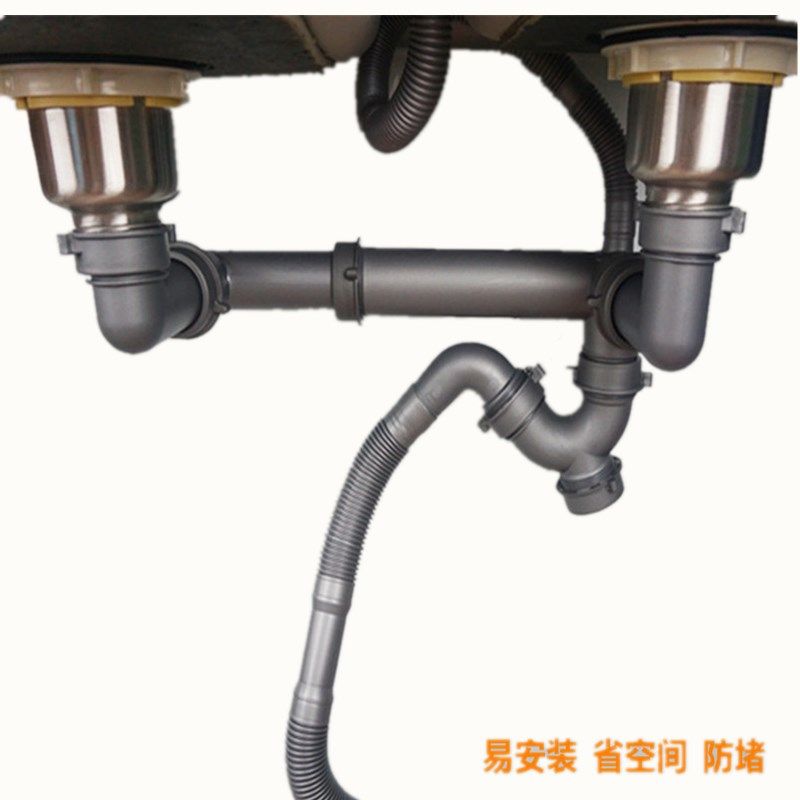 Kitchen sink Lower water pipe Basin Double Sink Stainless Steel 304 Lower water pipe Rear Downpipe Deodorized Drain Pipe
