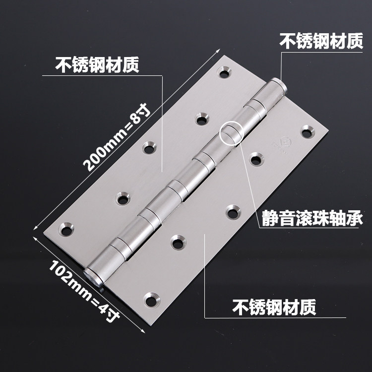 Large hinge stainless steel 8 inch bearing wooden door hinge folding page gate thickened hinge flat open ball bearing muted