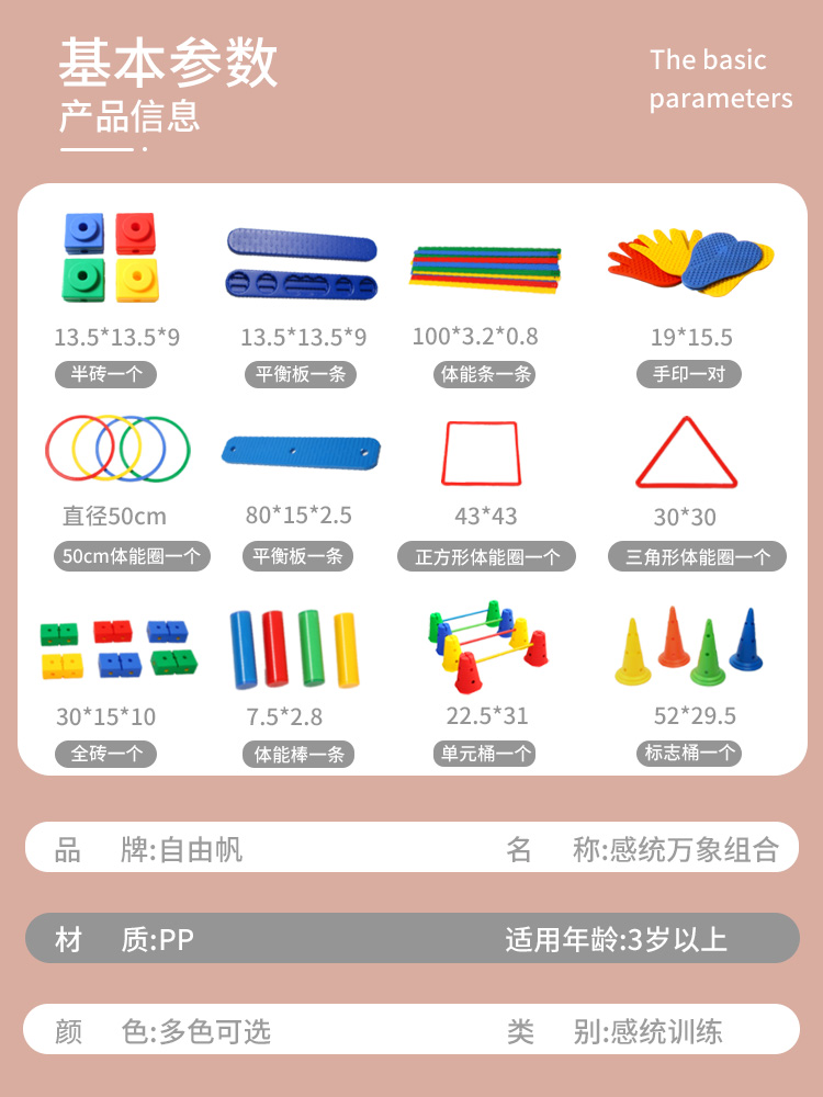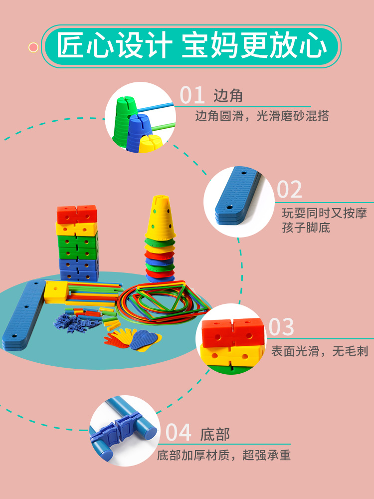New Vientiane combination luxury 114 pieces New Sun sensory integration combination Luxury 120 pieces thickened unit barrel 1 thickened full brick 1 thickened half brick 1 70cm fitness stick 1 35cm