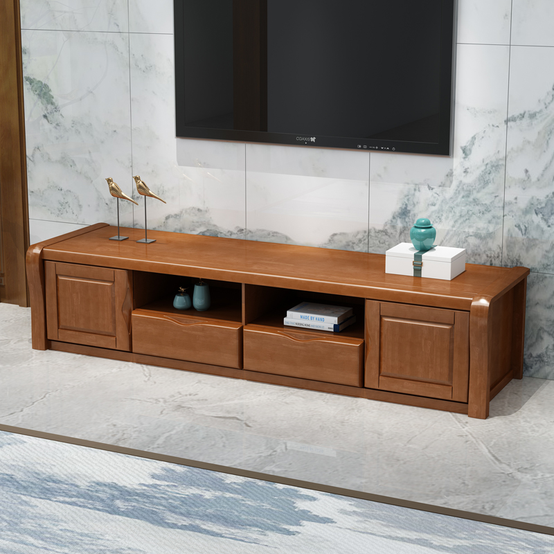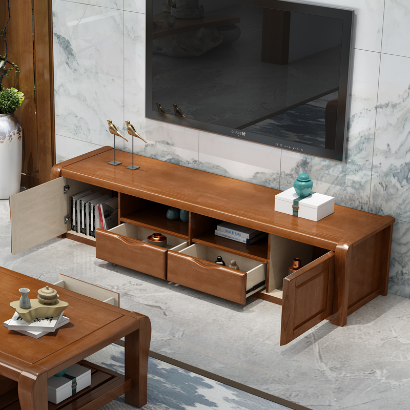 Full solid wood TV cabinet tea table combination living room New Chinese style modern minimalist size family type storage ground cabinet film and TV cabinet