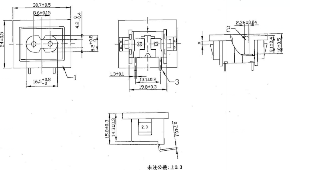 Bohxin AC AC power socket Eight-word seat 8-word seat Two-hole industrial socket C8 big eight-word solid