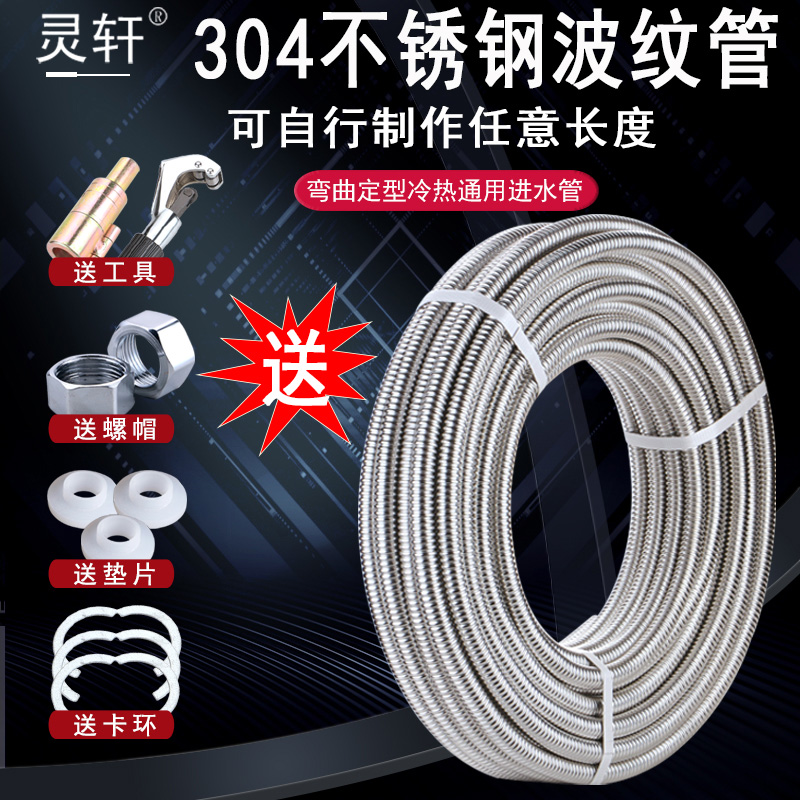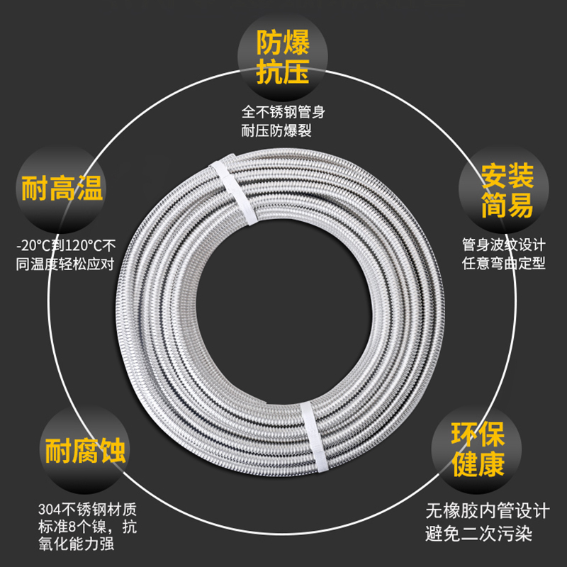 304 stainless steel corrugated pipe 4 min 6 inch high pressure anti - explosion metal hose water heater connects cold and hot inlet pipe
