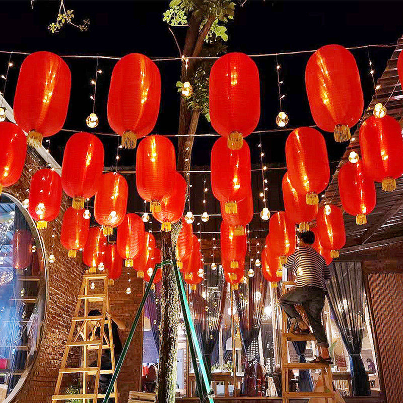 A series of red lanterns with long winter melon advertising folding outdoor waterproof mid-autumn and Spring Festival custom antique printing decorations