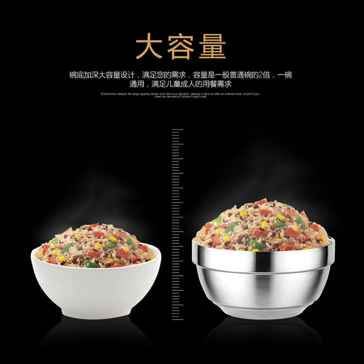 304 Double Layer Bright Light Bowl Platinum Bowl Stainless Steel Bowl Kindergarten Bowl School Canteen Home Food Grade Bubble Noodle Bowl
