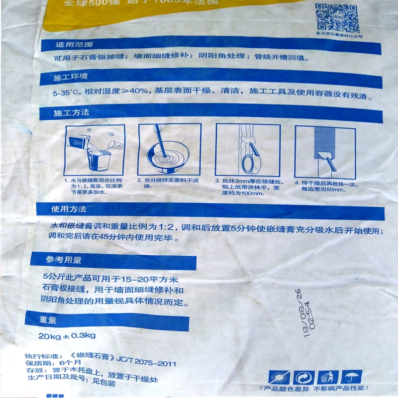Saint-Gobain Embedded Paste 20KG Bag Original Saint-Gobain Sewn Paste 10KG Bag Original Mount San Gobbanjko Ground Reinforcement 15KG One Barrel San Gobbanjko Wall Reinforcement 18KG A Barrel