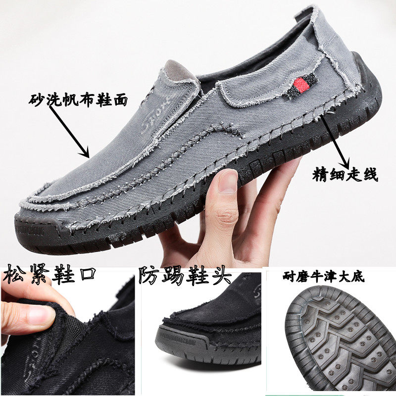 Men's style One foot pedal sailor shoes Old Beijing cloth shoes loose casual hair side beggars shoes greens middle-aged fat footed wide footed shoes
