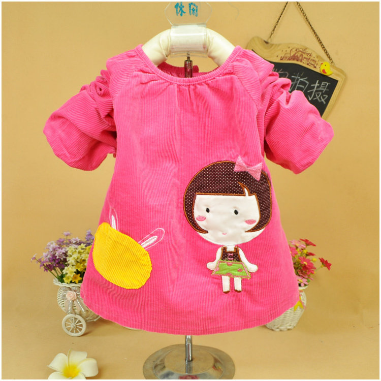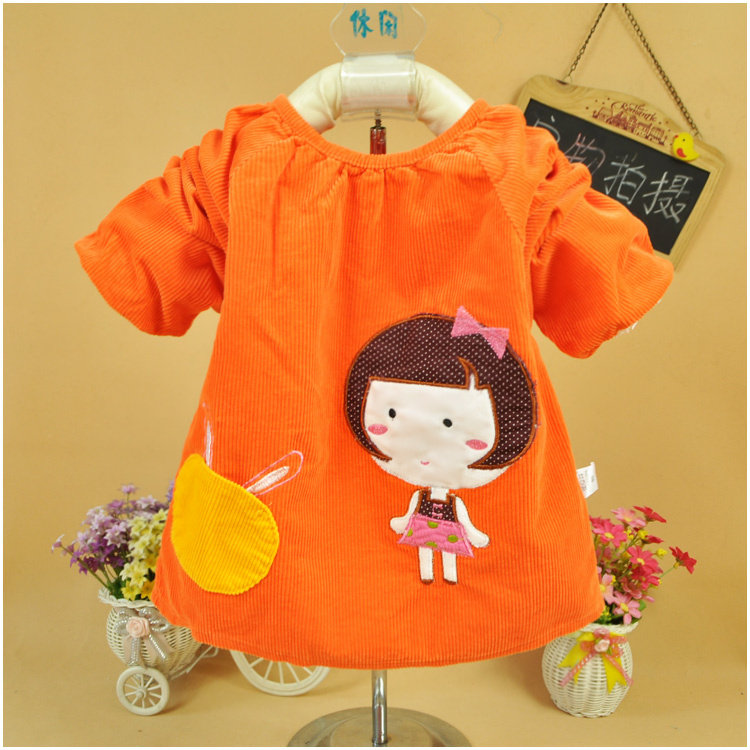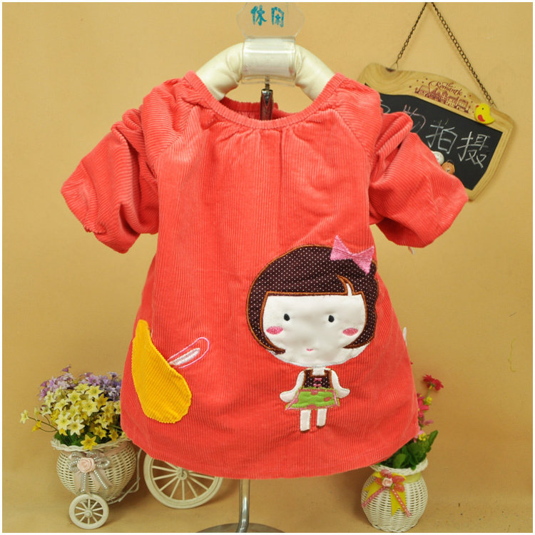 Spring, autumn and winter girl baby gown corduroy long-sleeved gown 1-2-3-4 years old children's anti-dressing and eating clothes and protective clothing