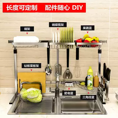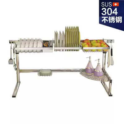 Punch-free 304 stainless steel tank rack drain dish rack kitchen shelf floor multi-layer storage layer rack knife holder