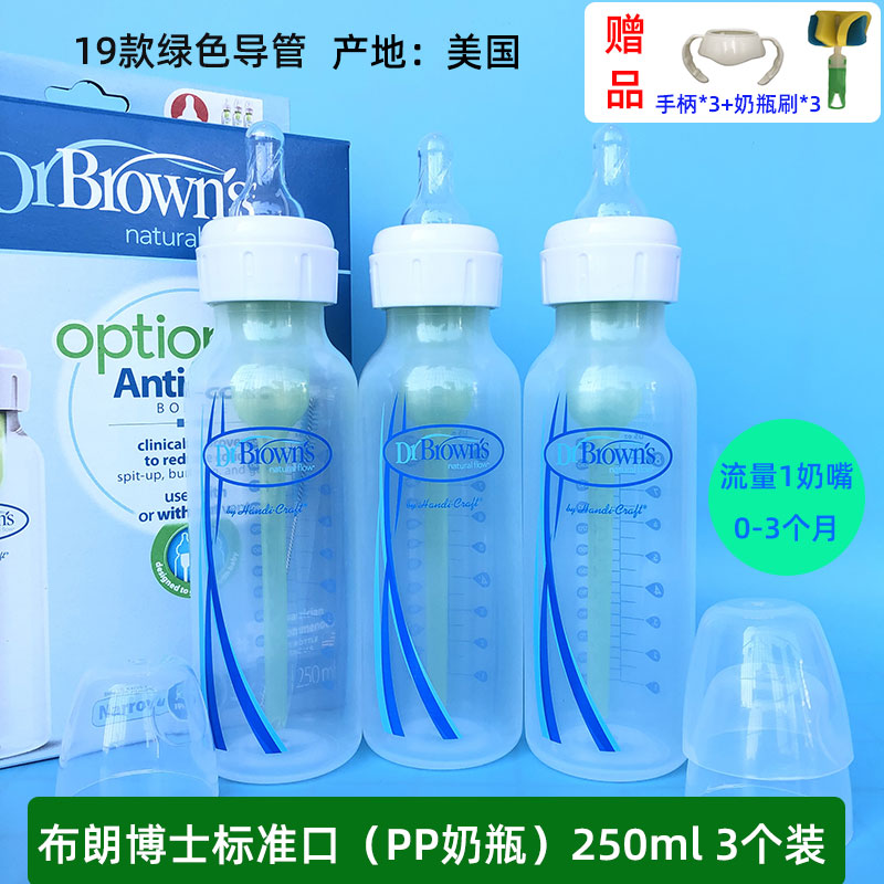 Spot US version Dr Brown Dr Browns standard mouth plastic PP anti-flatulence baby bottle anti-choking bottle