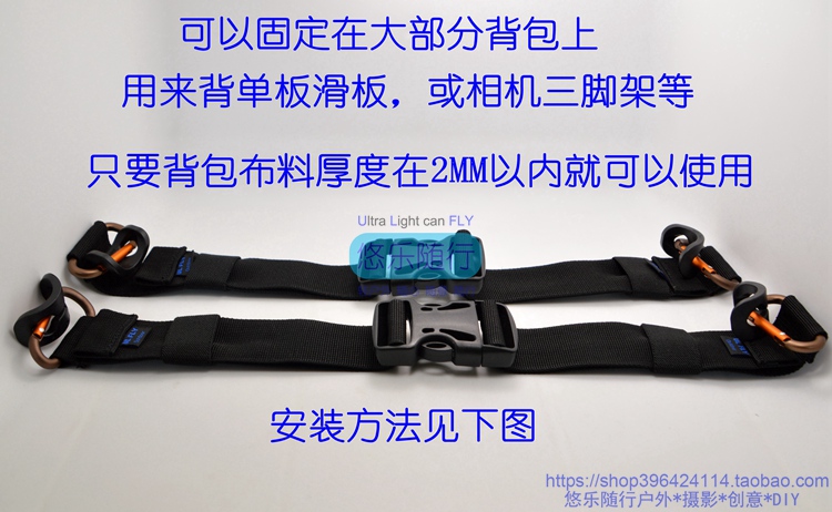 Drift Board Snowboard Fixing Strap Backpack Mount Strap Skateboard Strap Can be hung on any backpack