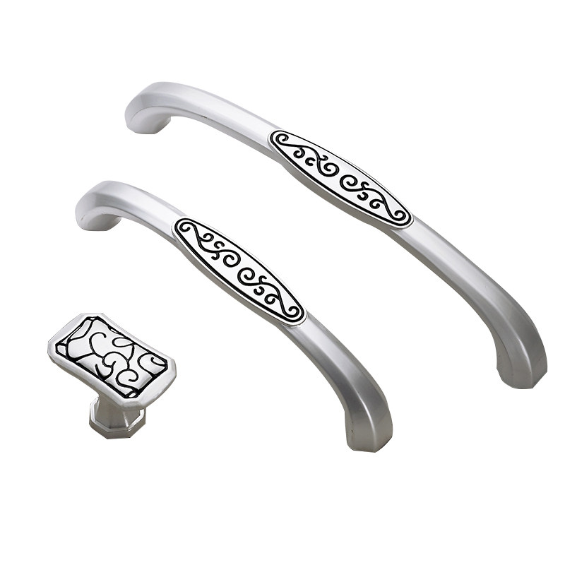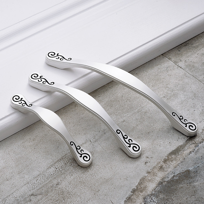 Solid handle zinc alloy ivory white luxury black engraved simple European style wardrobe cabinet door handle drawer handle