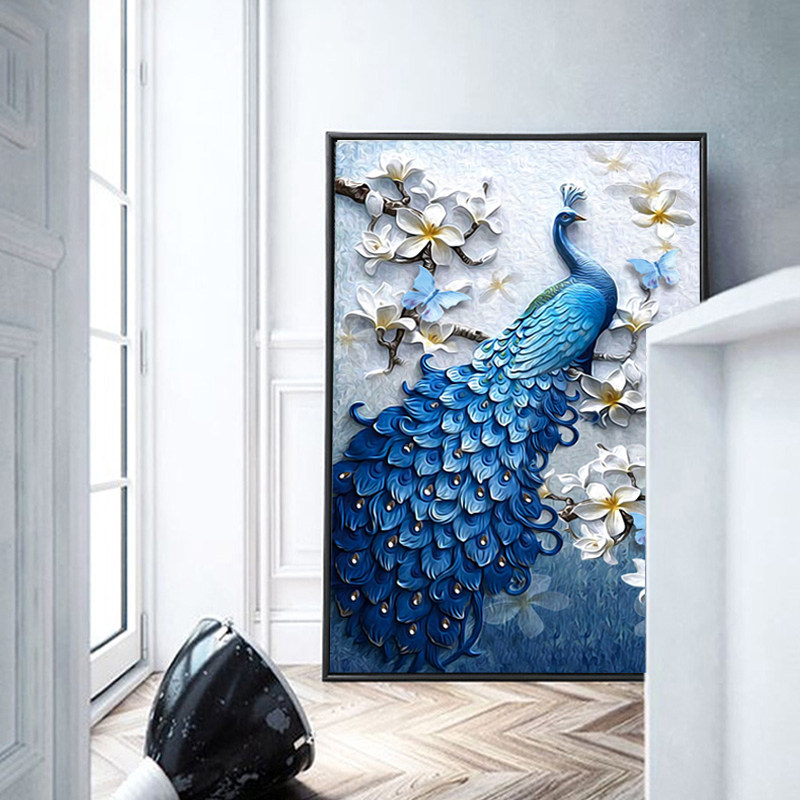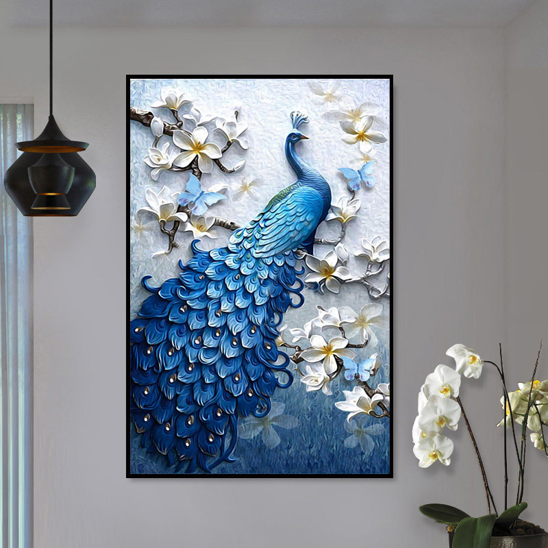 Diamond embroidery cross stitch 2021 new 5D diamond painting peacock vertical version porch full drill living room point drill simple and modern