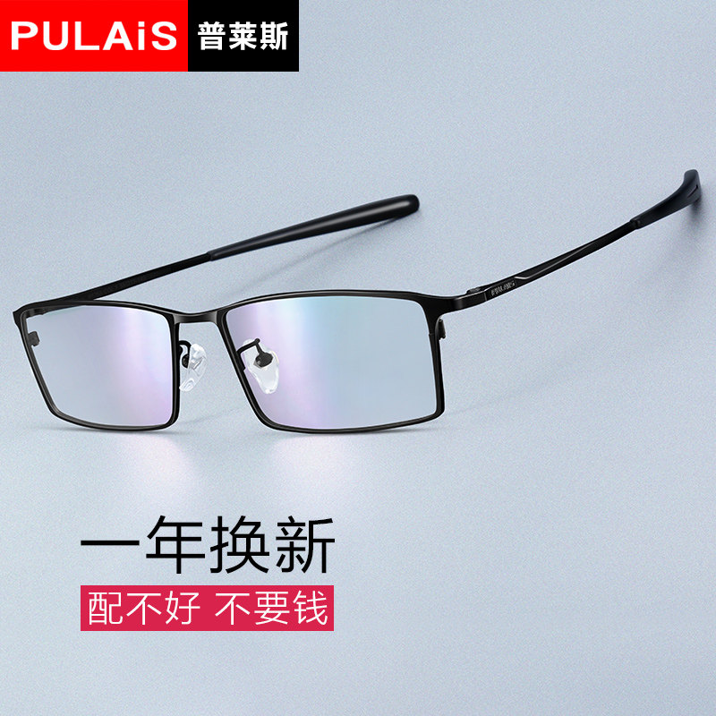 Plyce men's myopia glasses pure titanium eye frames male large face ultra light full frame wide face spectacle frame 756