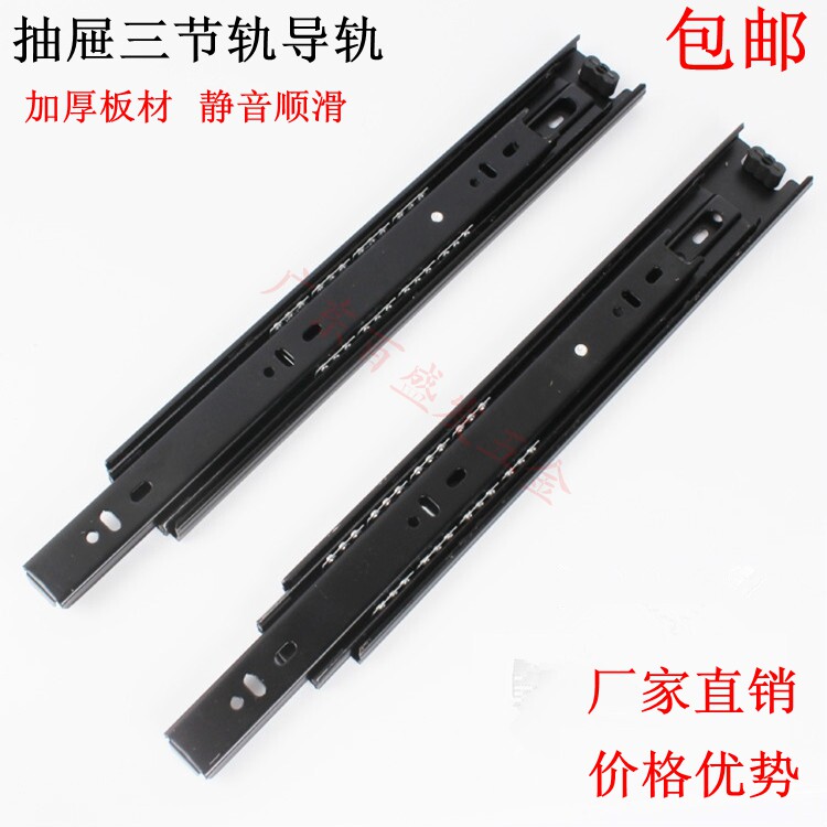 Drawer track stainless steel slide rail slide damping buffer mute three-section rail computer desk keyboard cold-rolled steel drawer