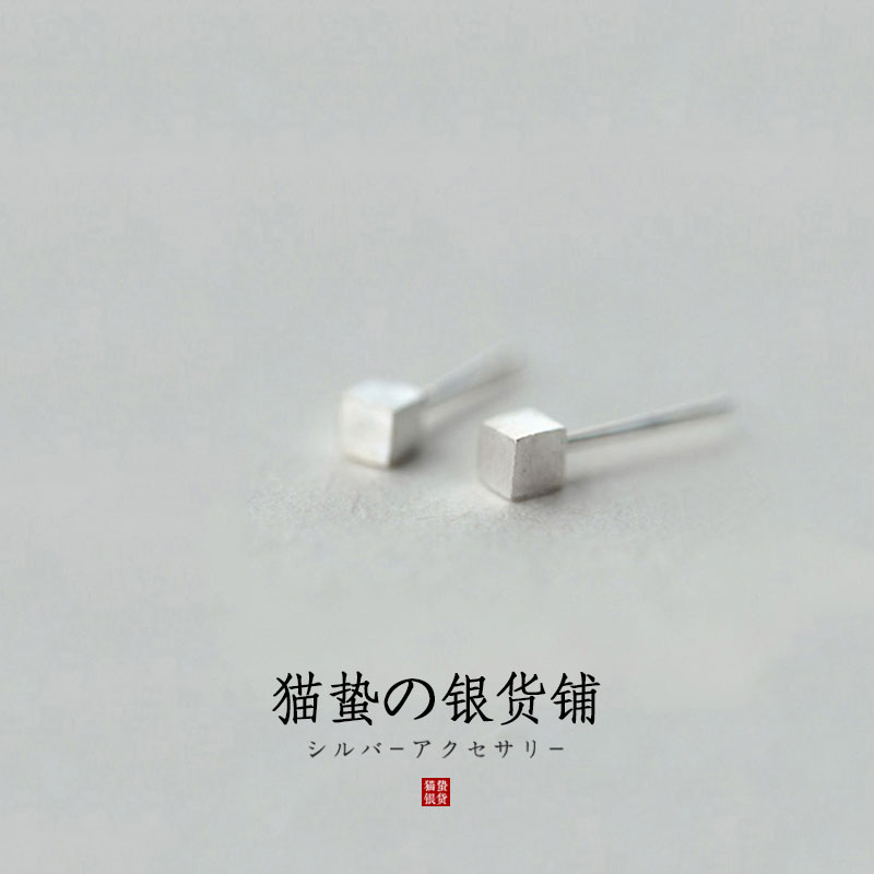 Cat sting S925 sterling silver small square ear needle female Japanese and Korean students simple and versatile sleep without removing hypoallergenic earrings