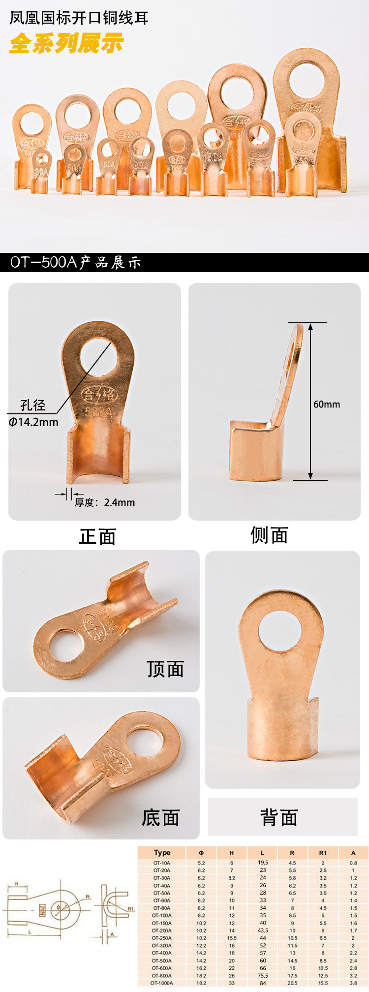 Pure bronze national standard open - mouth and nose 500A copper wire nose copper joint - bronze - connector 10 terminals