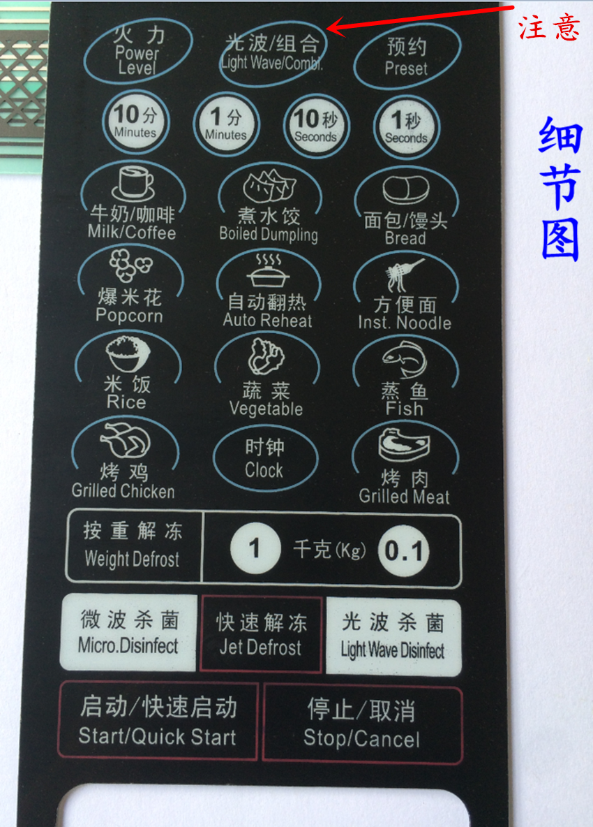 Galanz G80F23CN2P-BM1 (SO) microwave oven panel G80F23CN2P-KMI (SO) switch button