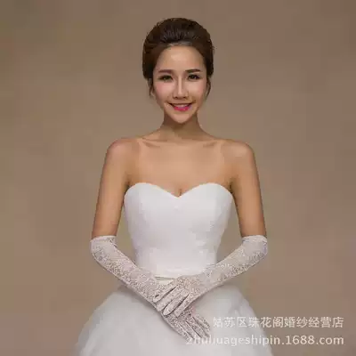 Wedding gloves White long version lace Bride wedding gloves Wedding dress festive red wedding wedding gloves