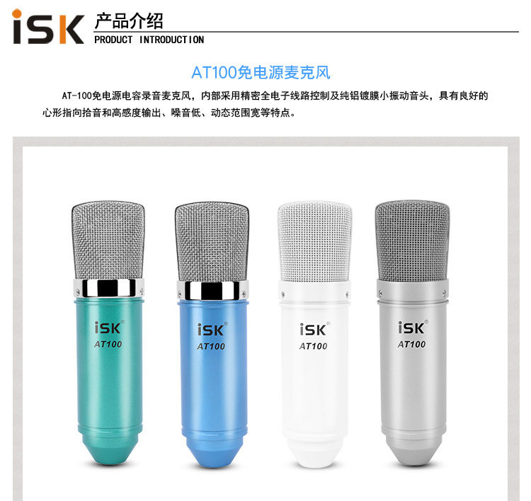 ISK AT100 power-free condenser microphone network K song condenser microphone shouting microphone host microphone