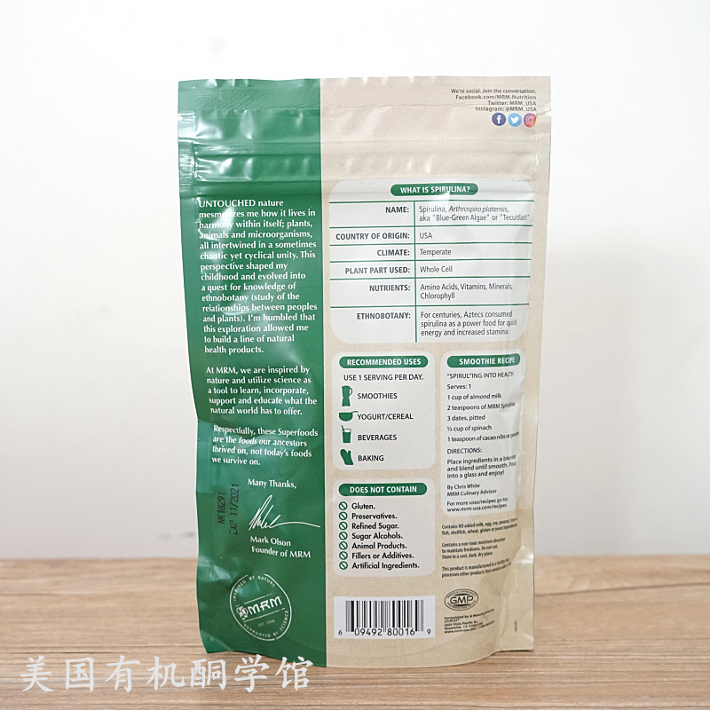 Spirulina Powder in the US MRM RAW Spirulina Powder without adding spirulina powder 240 g