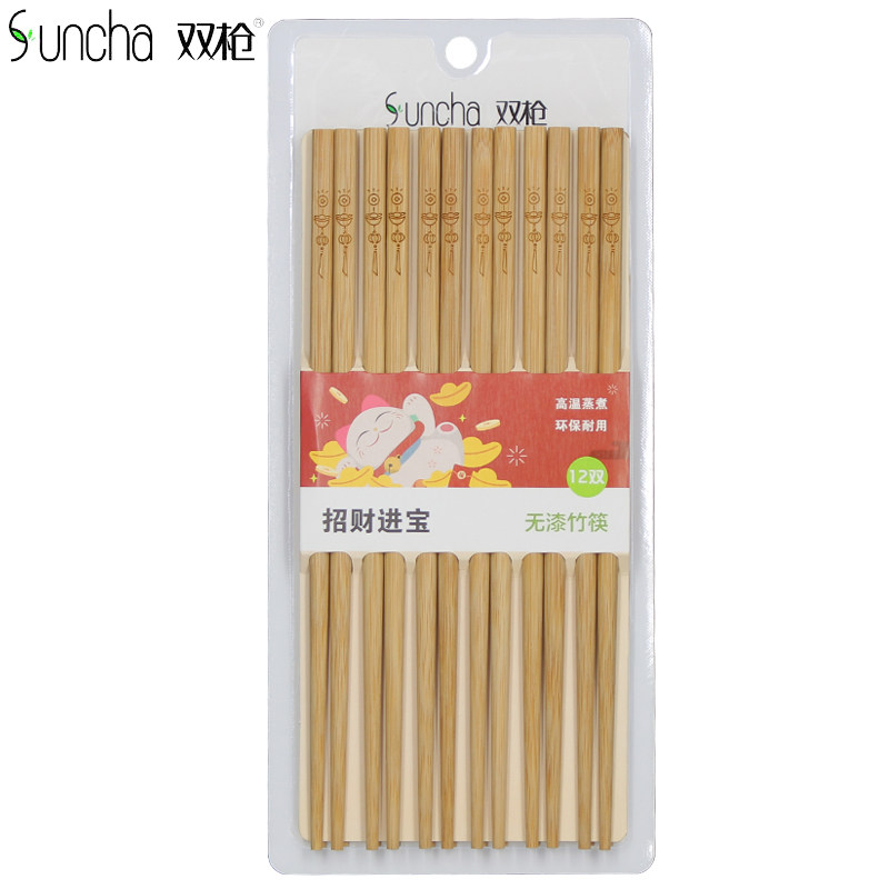 Double gun bamboo chopsticks Family hotel with creative design Japanese carbonized bamboo chopsticks 10 pairs of sets