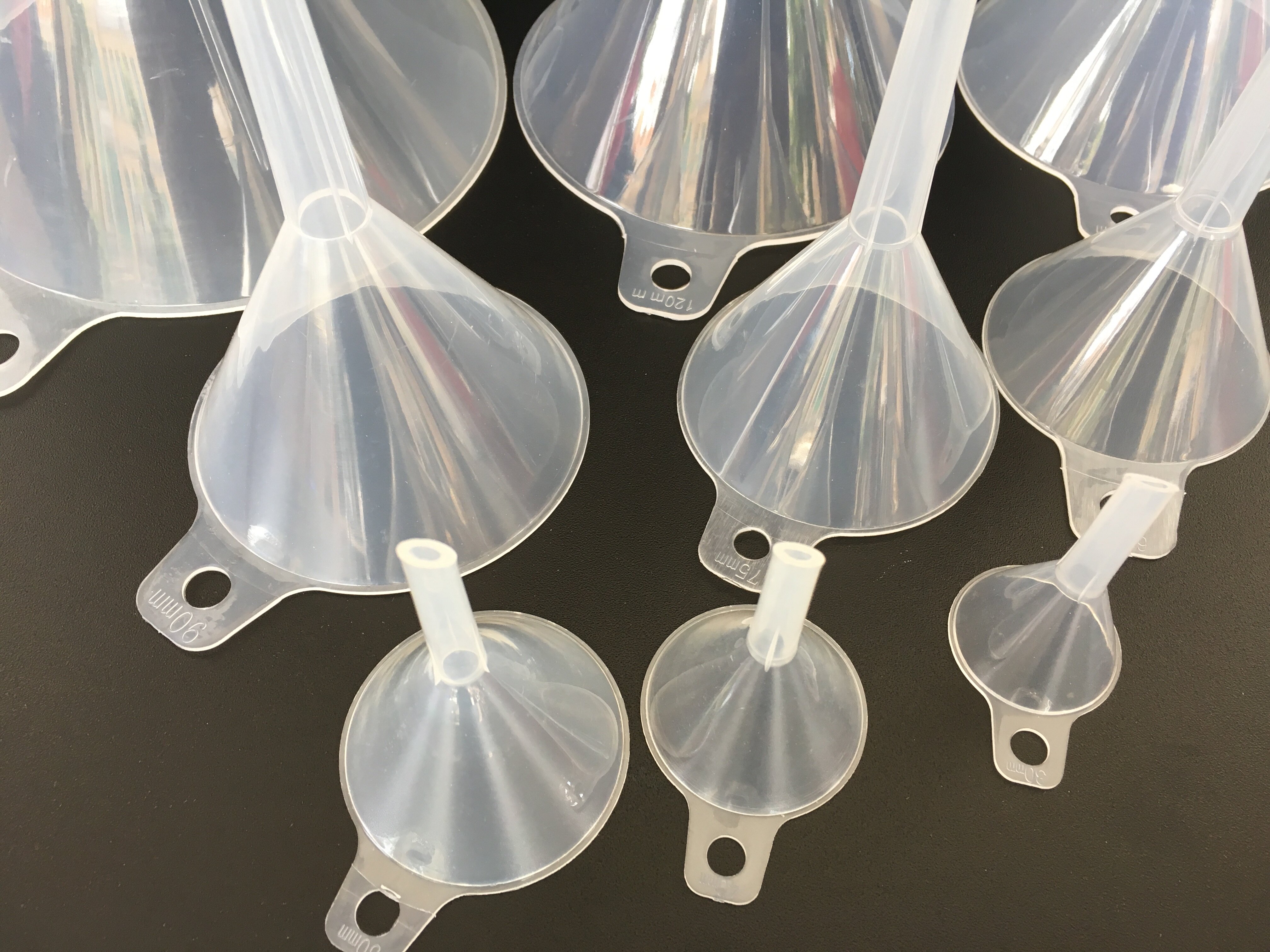Plastic funnel transparent mini household triangular separation 30 40 50 65 75 90 100 120 150mm