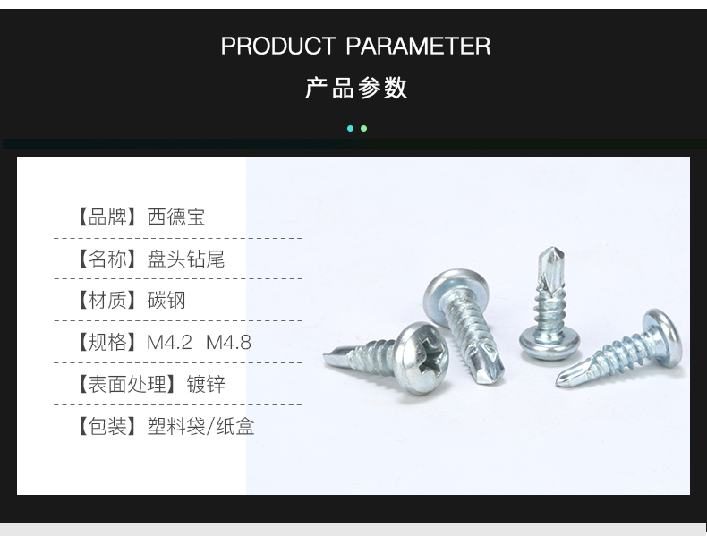 Round head drill tail screw Cross pan head Dovetail self-tapping self-drilling drilling angle iron Square tube Color steel tile iron sheet steel plate