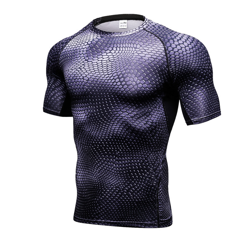 New men's 3D print fitness T-shirt running training short sleeves tight stretch wicking quick drying suit