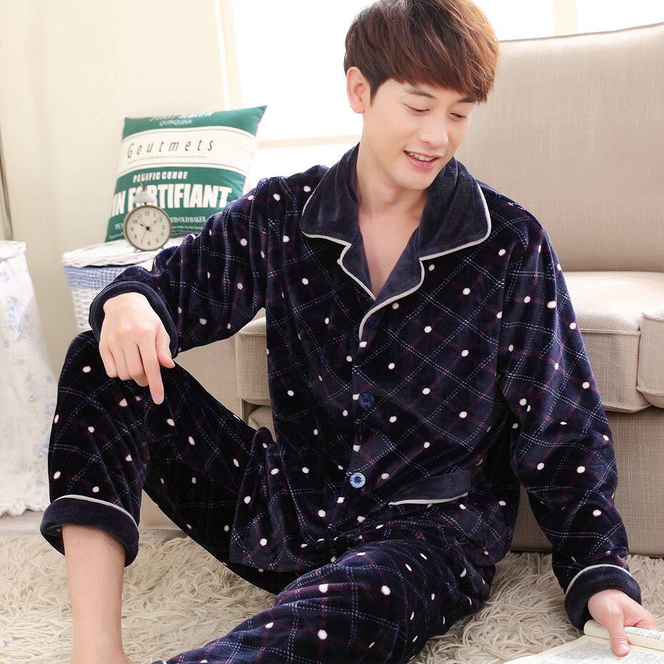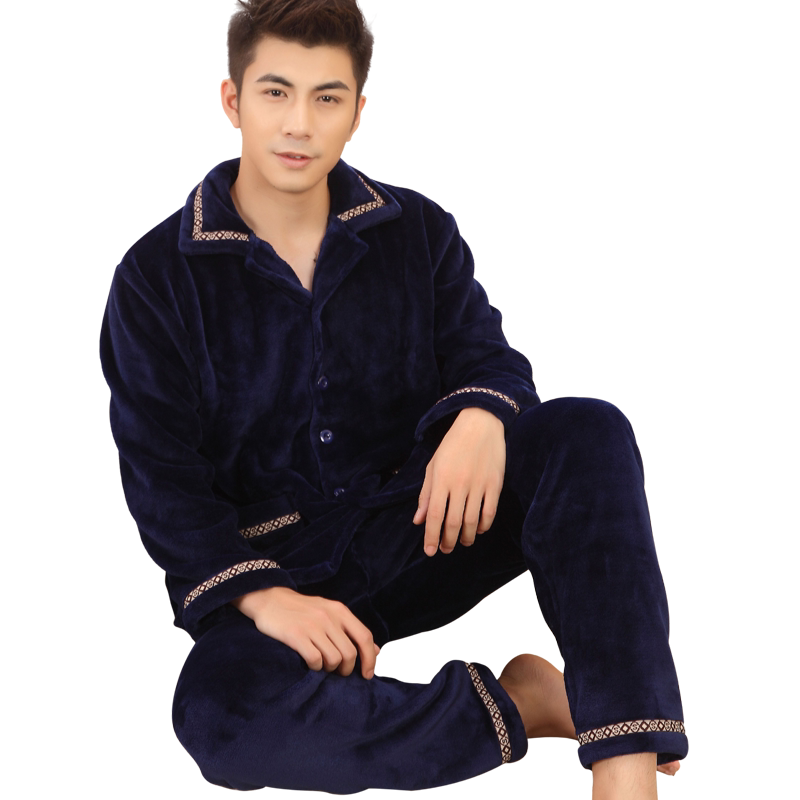 Coral fleece pajamas men's winter thickened plus velvet long-sleeved suit men's flannel home clothes autumn and winter