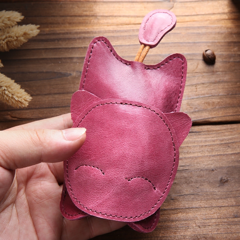 Key Bag Lady Han Cute Genuine Leather Drawback Minimalist Super Slim Head Layer Cow Leather Personality Creative Car Small Key Bag