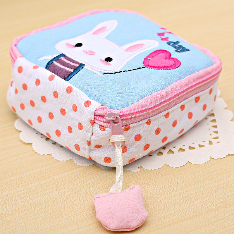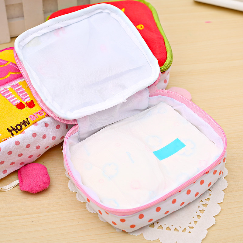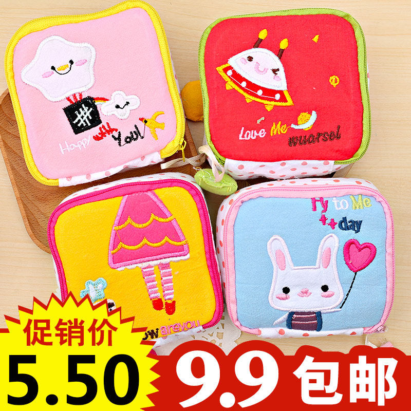 Cartoon sanitary napkin storage bag cute embroidered fabric sanitary napkin storage bag aunt towel bag menstrual event portable small bag
