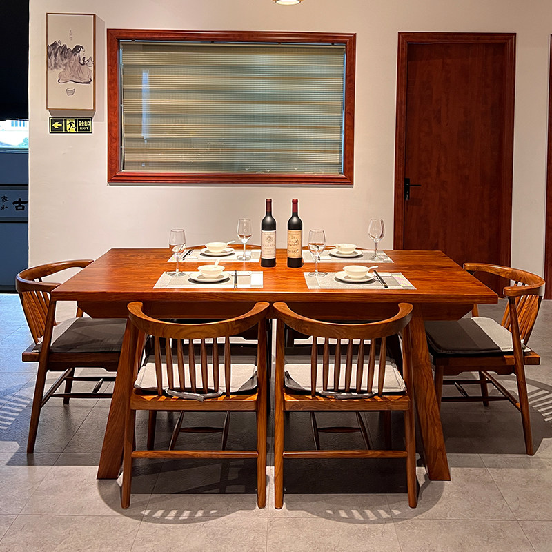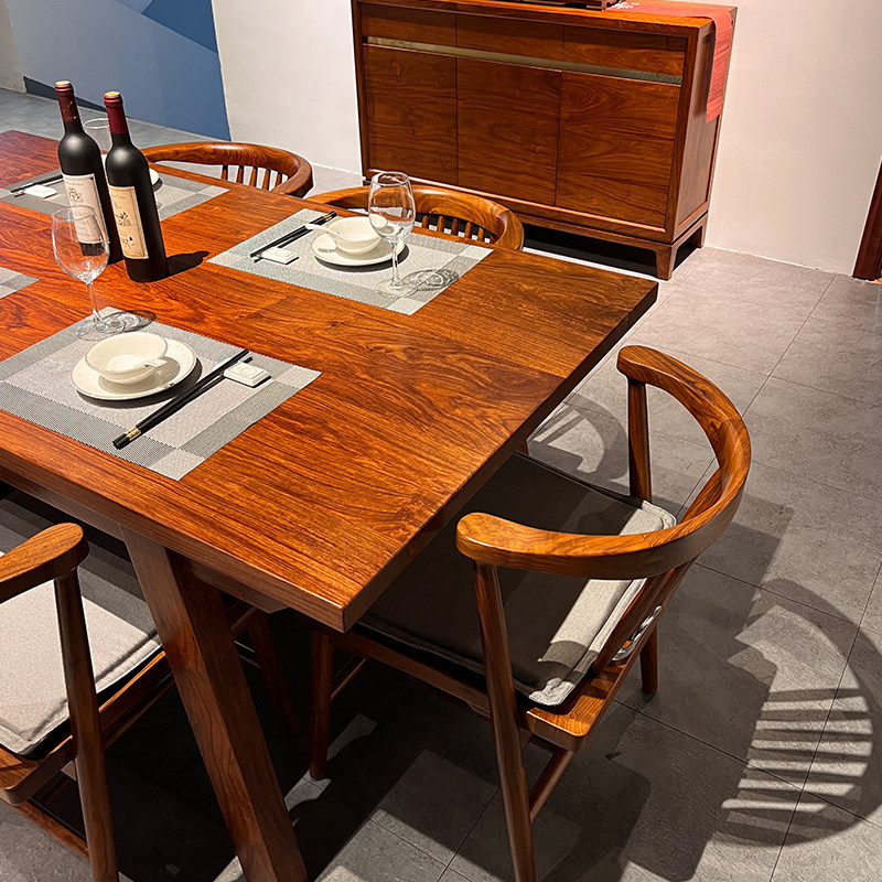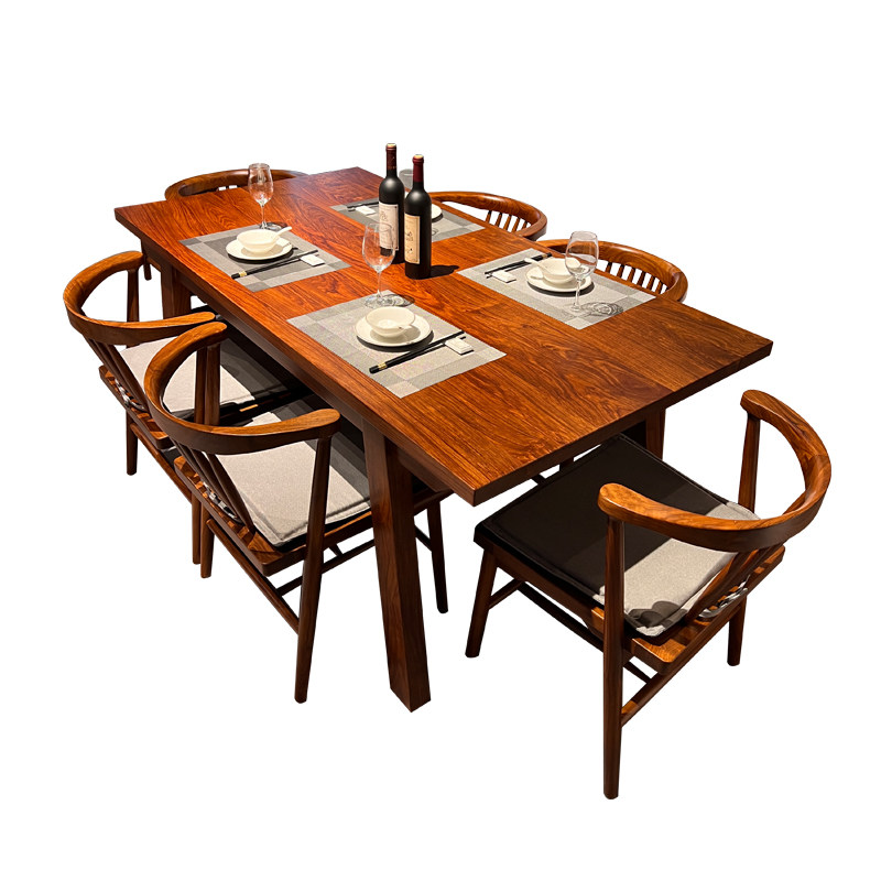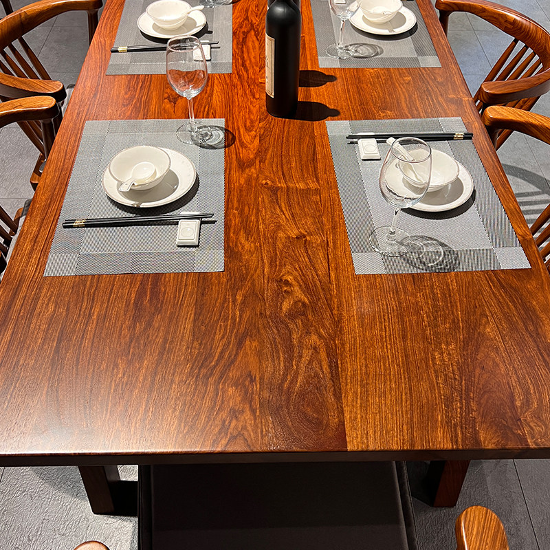 New Chinese style dining table and chairs Hedgehog Purple Sandalwood Furniture Restaurant Flowers Pear Wood Long Dining Table Home Solid Wood Plate Dining Desk-Taobao