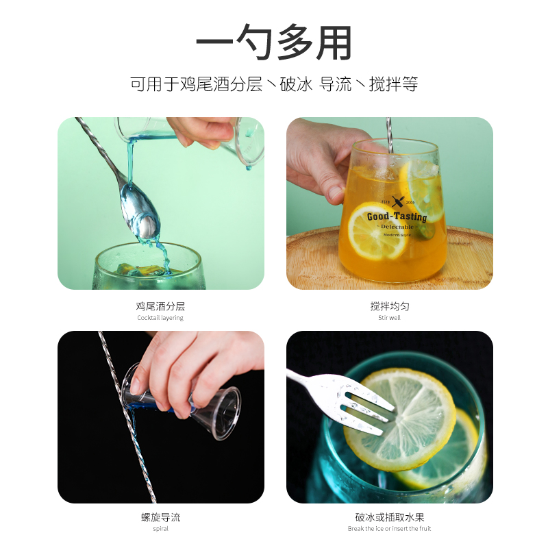Stainless steel long bar spoon 32cm stirring stick Cocktail Tone Wine Bar Coffee Milk Tea Stir Spoon, more spoonful
