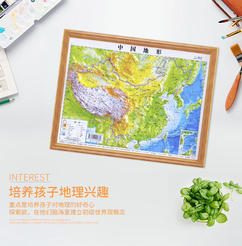 (school bag version) Full new version of Chinese terrain 3D rugged map 30cm * 23cm 3D printing model map PVC integrated forming elementary school junior high school student geography