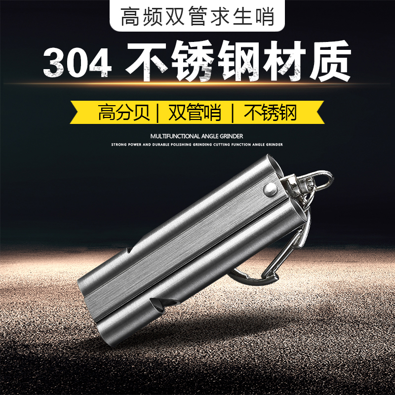 Aluminum alloy whistle double-tube double-hole burst pitch decibel outdoor wilderness survival whistle training bird stainless steel whistle